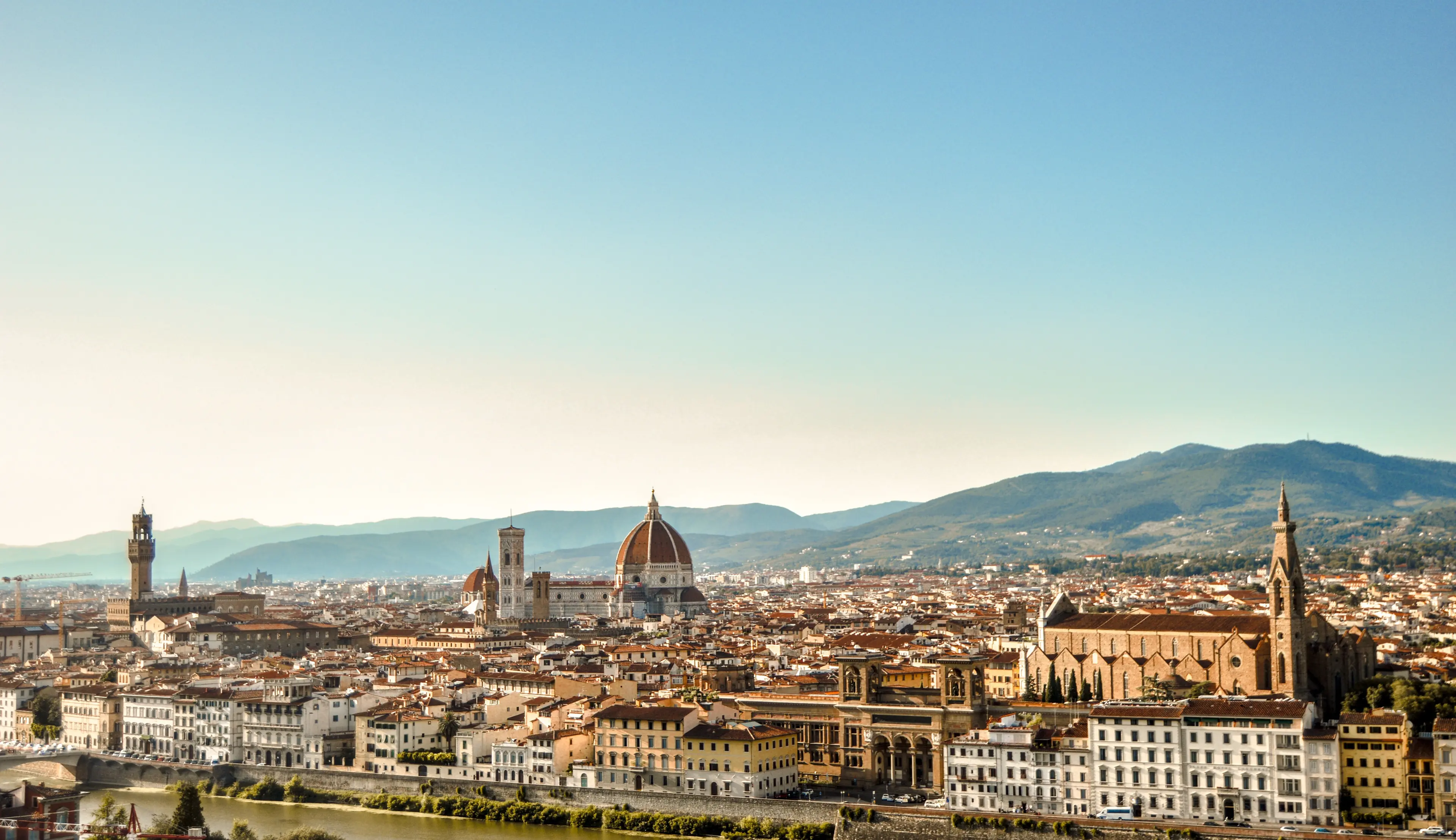 Florence is a hub for Renaissance art and culture with iconic landmarks and landscapes in the heart of Tuscany. The city is home to several world-renowned masterpieces in art and architecture including including the iconic Duomo, Michelangelo's "David," and the Uffizi Gallery, which holds works by da Vinci and Botticelli.